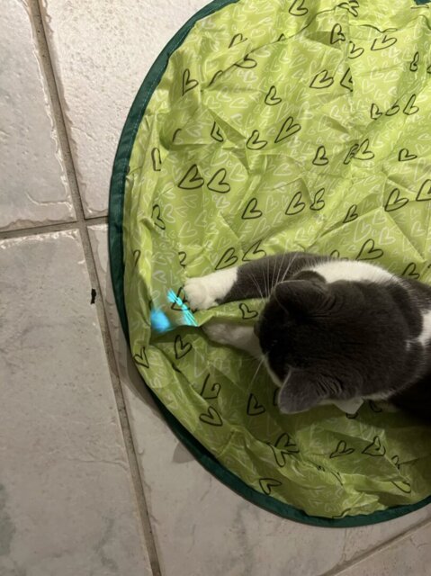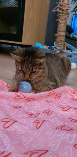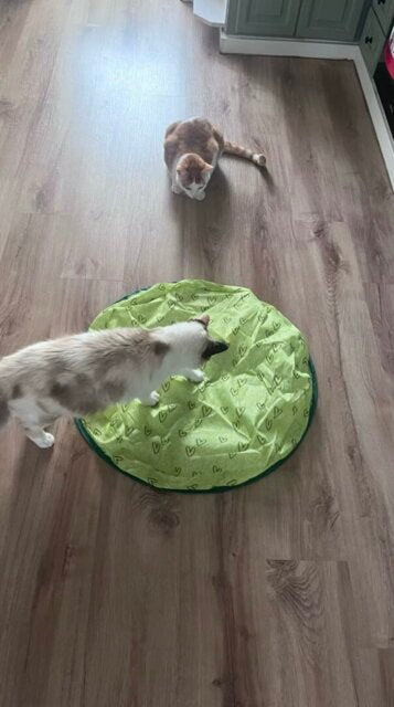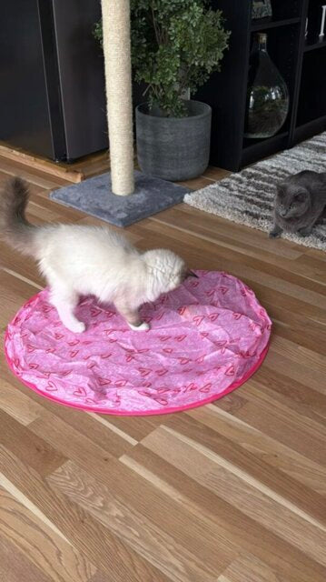 Le tapis ne fait pas de bruit car il est fabriqué en nylon de haute qualité, un matériau souple et silencieux qui absorbe les chocs et limite les frottements lors du passage de la balle roulante. Contrairement aux jouets motorisés, il ne comporte aucune pièce mécanique susceptible de générer du bruit. Ainsi, même lors de jeux intenses, le mouvement de la balle sous la couverture reste discret, ce qui permet aux chats sensibles ou anxieux de jouer sans être effrayés.